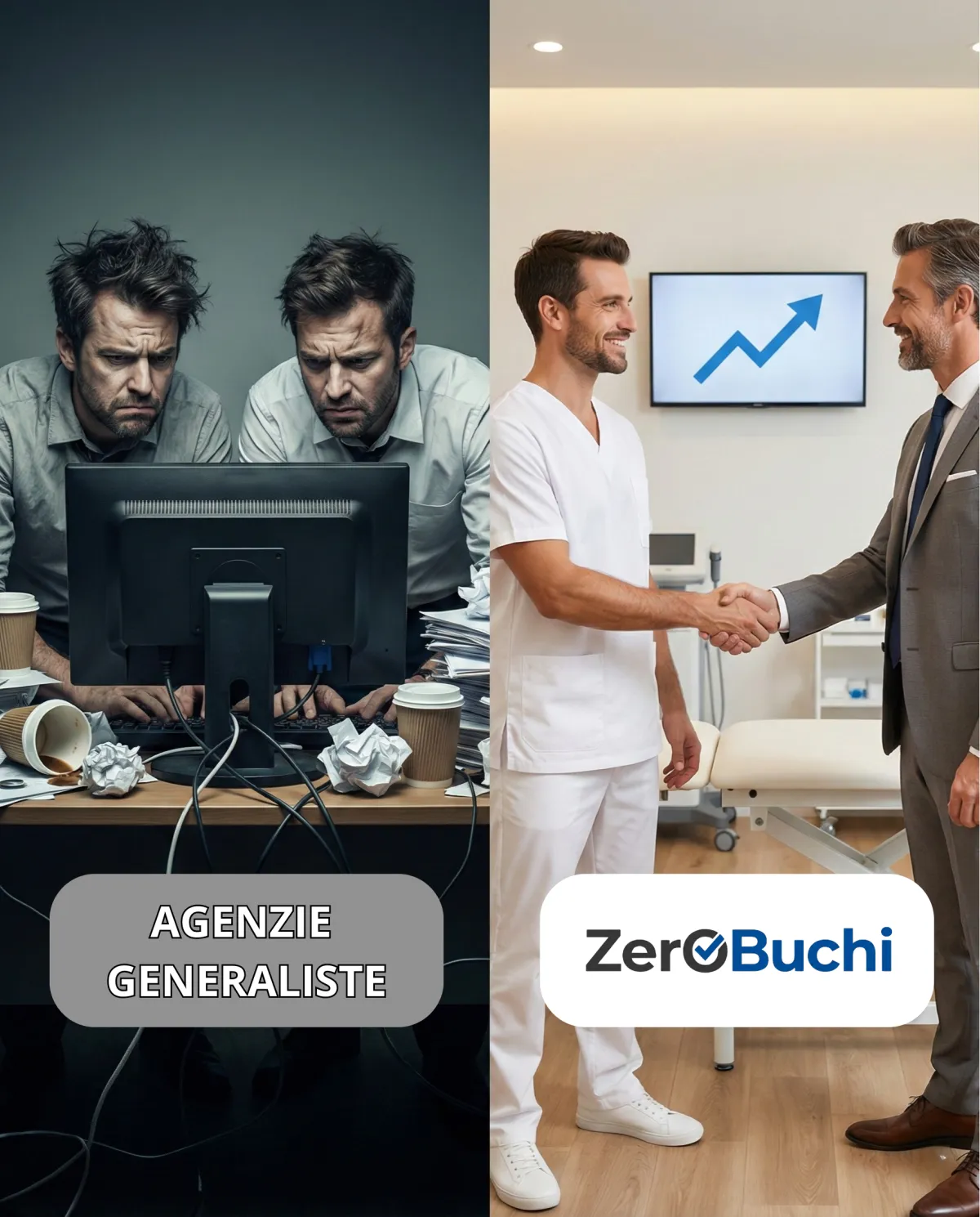 Perché noi non siamo un'agenzia generalista. Le altre agenzie falliscono perché usano strategie da ristoranti (sconti, offerte a tempo) su un settore sanitario. Noi conosciamo la differenza tra un paziente e un cliente, intercettiamo il bisogno di cura, non la voglia di shopping.